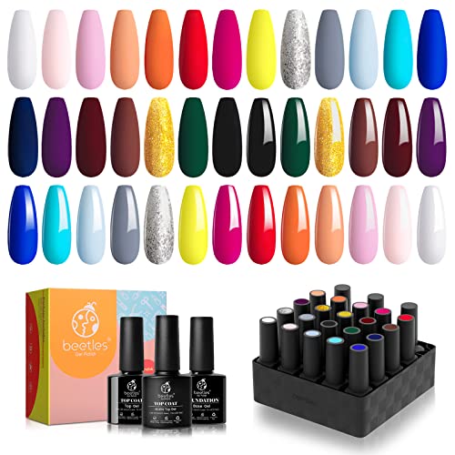 Beetles 20 Pcs Gel Nail Polish Kit Soak Off Led Lamp Gel Polish Set Black White Glitter Nail Gel Polish With No Wipe Base And Top Coat For Nail Art Salon